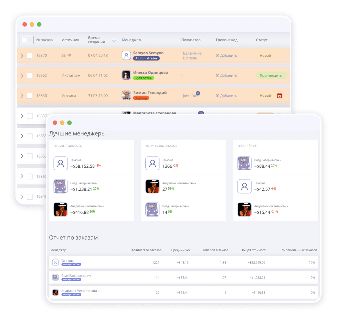 дозволяє бачити докладну інформацію: про продаж кожного менеджера, оборот, кількість допродажів, середній чек, % скасованих замовлень та багато іншого.